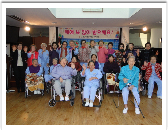 지난 1.12일 그랜드자연요양병원의 실버테라피!웃음치료 프로그램 행사를 진행하였다.행사 말미에 2012년 행복웃음 바이러스을 발산하는 행복한 미소가 있는 사진찍기를 하고 있는 이정애,김미애 강사와 환우들의 모습입니다.참 많이 웃었던 하루 입니다.여러분들도 오늘 하루 웃음으로 시작해 보세요! 하루가 행복해 집니다.