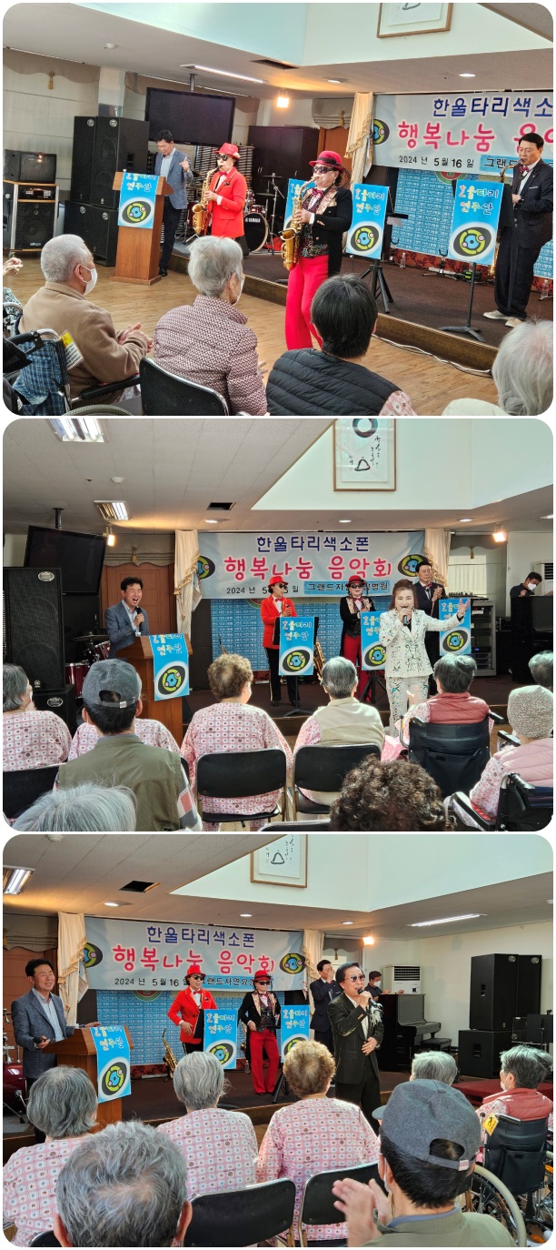 그랜드자연요양병원은 5월 16일 한울타리 색소폰의 <행복 나눔>공연으로 작은 음악회를 열었다. 이날 공연은 색소폰연주와 가요, 민요, 무용 등 다채로운 프로그램으로 어르신들과 교감하며 행복한 시간을 만들었다.