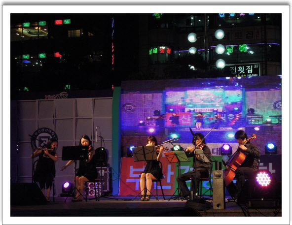 그랜드자연요양병원의 GNH앙상블은 지난 7.23일 광안리해수욕장 야외상설무대에서 부산경상대학이 주최하는 제13회 전국 청소년 예능콘테스트 무대의 휘날레를 장식하는 축하공연을 가졌다. 이 날 공연에서는 Movie & Drama OST 모음곡을 연주하여 참여 관객들의 뜨거운 호응을 받았다. [공연장 스케치]