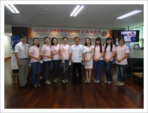 지난 8.20일 러브KOREA 스마일 부산홍보단(대표 조성화)이 그랜드자연요양병원을 찾아 사랑과 미소를 담은 봉사활동을 펼쳤다. 단원들은 내.외국인들에게 한국과 부산을 홍보하고 알리는 단체로 활동중인데 8월을 맞아 이 곳에서 요양과 치료중인 어르신들과 함께하는 시간을 가졌다.단원들은 각병실을 방문하며 잠시지만 말벗이 되어 어르신들과 소통의 시간과 허그타임을 가졌다.이어서 작은복도음악회도 준비하여 진행하였다. 러브KOREA 스마일홍보단 조성화대표는 어르신들과 정기적인 만남을 악속하며 봉사활동의 인사에 대신하였다.나용승 병원장은 여러분들의 미소가 주말 오전 병원을 더욱 화사하고 아름답게 만들어 주었다며 부산의 미소와 나눔봉사가 더 많은 곳으로 널리 퍼지길 당부 하였다. [봉사현장 스케치]