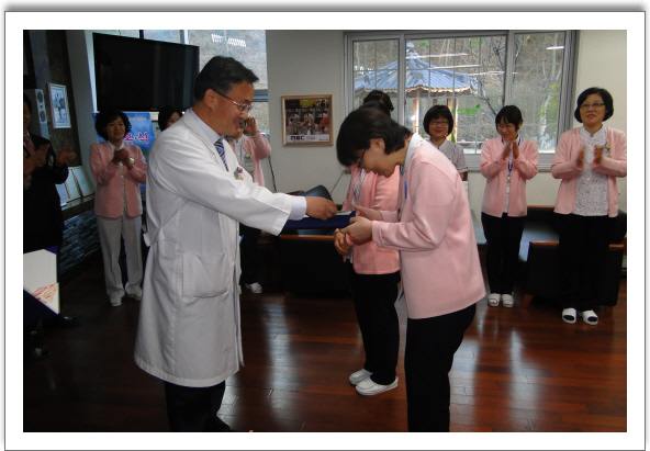 그랜드자연요양병원은 지난 3.2일 임직원들이 함께한 가운데 3월 월례회를 병원로비에서 가졌다. 이날은 행사에 앞서 실무지침서 평가 우수사원에 대한 시상식이 있었다.공동1위에 나란히 오른 김지은 간호사(2병동)와 남정원간호사(3병동)가 각각 수상하였다. 이날 나용승 병원장은 3월의 둘째날 꽃샘 추위는 기승을 부리지만 계절의 순리대로 봄은 다시 우리에게 찾아와 새로운 출발을 알린다며 다함께 봄을 맞아 어르신들도 이제는 자주 산책하시는 것도 도와드리고 다함께 봄을 맞이 하자며 인사에 대신하였다. 새로 입사한 신입직원들도 함께 인사하는 시간을 가졌다.그랜드자연요양병원은 신입직원들을 위한 오리엔테이션을 오는 3.28일 가질 예정이다.