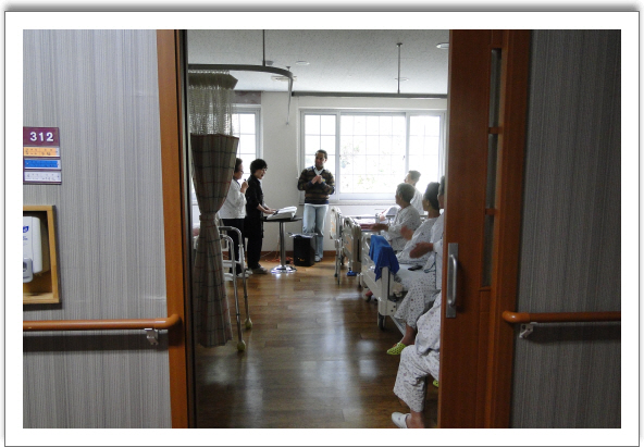 본원은 지난 10.20일부터 찾아가는 뮤직테라피를 진행하고 있다. 와상환자의 병상을 찾아가서 들려주는 음악선물은 윤명숙선생님과 고신대학교 유학생인 SOKO군의 부드러운 음률로 만들어 지고 있다. 본원은 음악치료라는 프로그램으로 5F이벤트실에서 지속적으로 테라피활동을 진행하였으나 이번 프로그램 개편으로 좀더 많은 환우들에게 찾아가서 들려드리고 함께 부르는 방식으로 전환을 시도하고 있다.와상환자분들도 이 같은 프로그램을 즐거운 마음으로 반기며 가족愛을 느낄수 있는 동기부여가 되었다며 다음 시간을 기다리고 있다. [소코와 함께 부르는 노래선물]