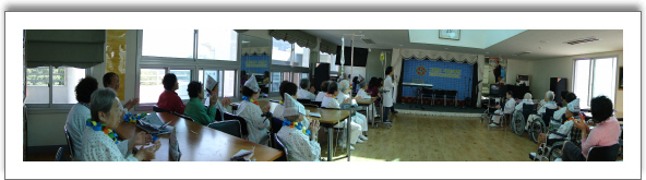 그랜드 자연요양병원은 매주 목요일 15:00 사회복지사 손주임이 주관하는 웃음치료가 진행된다.지난5.20일은 박수체조로 몸을 풀고 1일 1테마로 진행되는 색종이 고리로 만든 금메달을 만들어 보았다.이 날은 부산외국어대학교 사회복지학과 재학생들도 자원봉사자로 참석하여 자리한 환우들과 같이 테라피를 실시하였다.행사 말미에는 흥겨운 노래방의 무대도 만들어졌다.맛있는 식단을 위해 늘 수고하는 최성미 영양사가 까메오로 출연하여 웃음치료가 그랜드가족의 참여 한마당이 되었다.본원의 웃음치료는 매주 목요일 오후3시에 진행되며 사전 신청을 하면 참관도 할 수 있다.