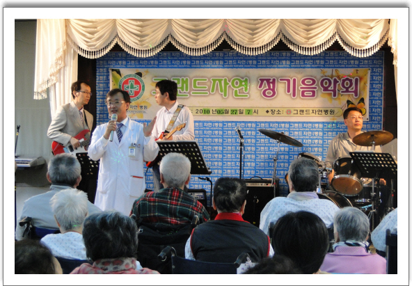 그랜드자연요양병원은 오는 6.24일 제32회 그랜드자연정기음악회를 갖는다.6월 호국보훈의 달을 맞아 준비되는 음악회는 야외무대로 꾸며진다.일찍 찾아온 6월밤공기의 온도를 조금은 낮추어 줄 고신대학교 삼손브라덜스 중창단의 앵콜무대와 색소폰릴레이 연주가 펼쳐진다.색소폰 연주는 도원 임일용,테너색소폰 김연옥,해운대 색소폰CLUB,그랜드자연요양병원 나용승병원장과 박정식과장의 무대로 꾸며질 예정이다.