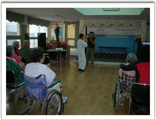 11월3주차 웃음치료는 개원기념일에 맞추어 노래자랑으로 흥겨운 시간을 가졌다.본원은 이성구 동서대학교 유머스피치주임교수의 지도로 매주 목요일 오후 웃음치료의 시간을 가진다.누구든지 참관이 가능하고 이날은 송순임 부산남구 구의원이 참관을 했다.
