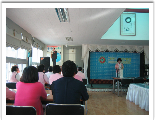 제2회 컨프런스 "침상곁에 서 있는 나는 어떤 모습일까? -일시/장소:2009.12.8(화)13:00/이벤트실 -강연:오미송 간호과장 -주제:침상곁에 서 있는 나는 어떤 모습일까? 그랜드자연요양병원은 지난 12.8일 전직원을 대상으로 제2회 컨프런스를 가졌다.이 날 강연은 본원 오미송 간호과장이 "침상곁에 서 있는 나는 어떤 모습일까?" 라는 주제로 발표하였다.병원을 찾는 모든 분들에게 나의 첫인상은 어떤가? 말씨와 인사는 어떠한가? 나의 손길의 현주소는 어디인가? 식사수발시 나는 얼마나 정성을 다하는가? 병실관리 이제는 pro답게 행해지고 있는가등 병원생활의 전반에 대해서 직원들이 가져야될 프로정신을 강조하였다. 강연 말미에 전직원은 "프로의 근성 5가지"를 큰소리로 외치며 제2회 전직원 컨프런스를 마쳤다. 이 날 저녁 박정식 진료과장은 부산문화회관에서 특별공연에 참가해 늦은 밤 부산시민들과 병원가족들에게 좋은 섹소폰의 음률을 선사하기도 하였다.
