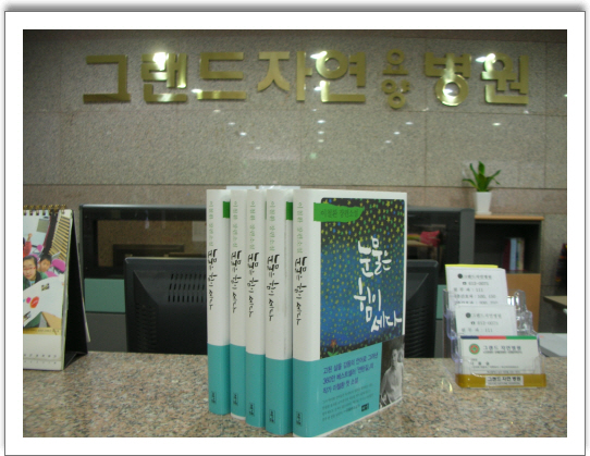 그랜드자연요양병원 문화의 달 10월의 테마는"book" 그랜드자연요양병원은 책을 무료로 빌려드리는 북카페를 운영하고 있다. 이번 10월에는 360만독자들을 울린 연탄길의 작가 이철환의 첫 장편소설"눈물은 힘이세다"를 선정하여 환우와 직원들에게 책 읽는 분위기를 조성하여 독서인구 저변확대에 이바지 하고 있다.또한 3층 문화홀에 가장편안하게 책 읽을수 있는 공간을 창가에 소담하게 마련하기도 하였다.본원은 "10월의 책" 독자를 위해 서평쓰기 이벤트도 전개하여 베스트후기를 공모하고 있는데 마감일은 오는 10월30일 까지 이며 당선작은 11월 월례회가 열리는 11.1일에 시상할 예정이다. 서평쓰기는 이 곳 홈페이지 자유게시판에 머릿글로 [응모]라고 치고 게재하면 누구나 참여가 가능하다. -북카페 운영기간:2009.10.7~계속 -10월의 책:눈물은 힘이세다 -서평쓰기 이벤트기간:2009.10.7-10.30 -시상식:2009년11월 월례회(1층로비)