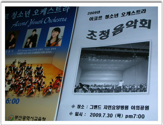 그랜드자연요양병원 파이에온 잔디광장에서는 지난 7월30일 19:00 제21회 그랜드자연음악회를 가졌답니다.이날 행사에는 아코르청소년 오케스트라를 초청하여 연주회를 가졌으며 부산음악사랑회에서도 성악을 들려주셨고 환우가족의 플룻과 바이올린 연주 그리고,나병원장님의 색소폰연주가 여름밤을 수놓았습니다. 클래식이 있어서 참 좋은 밤이었습니다. 진행은 KBS 박근아님이 수고해 주었답니다. 글.그랜드자연요양병원 기획실