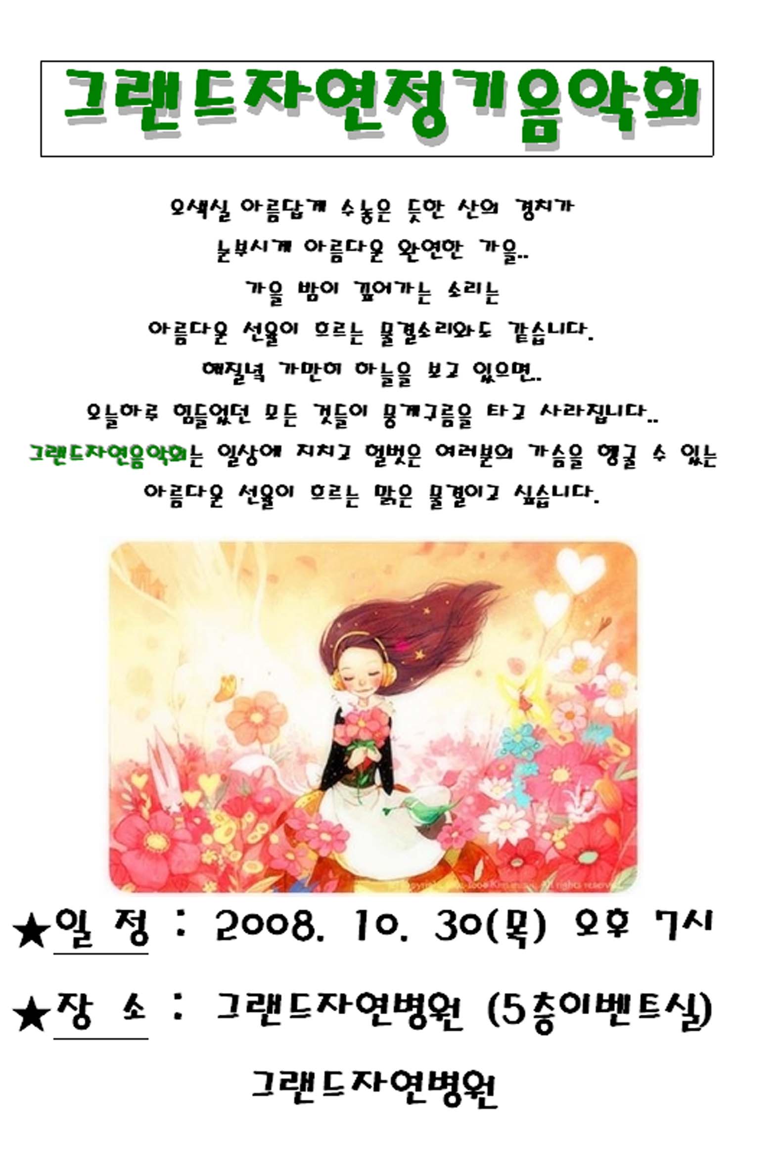 10월 그랜드자연정기음악회 페이지 정보 작성자 그랜드자연병원 작성일08-10-19 10:32 조회2,830회 댓글0건 이전글 다음글 목록 본문 .. 댓글목록 등록된 댓글이 없습니다. 이전글 다음글 목록