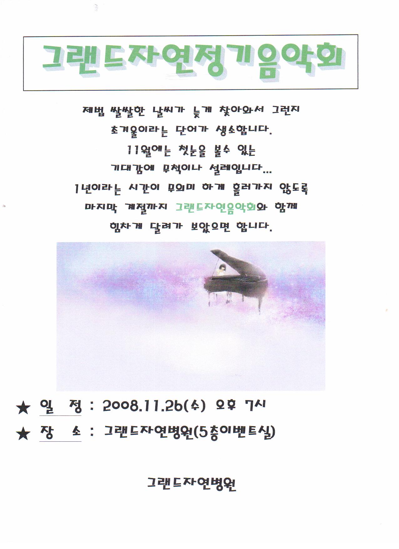 11월 그랜드자연정기음악회 페이지 정보 작성자 그랜드자연병원 작성일08-11-17 13:03 조회2,717회 댓글0건 이전글 다음글 목록 본문 .. 댓글목록 등록된 댓글이 없습니다. 이전글 다음글 목록
