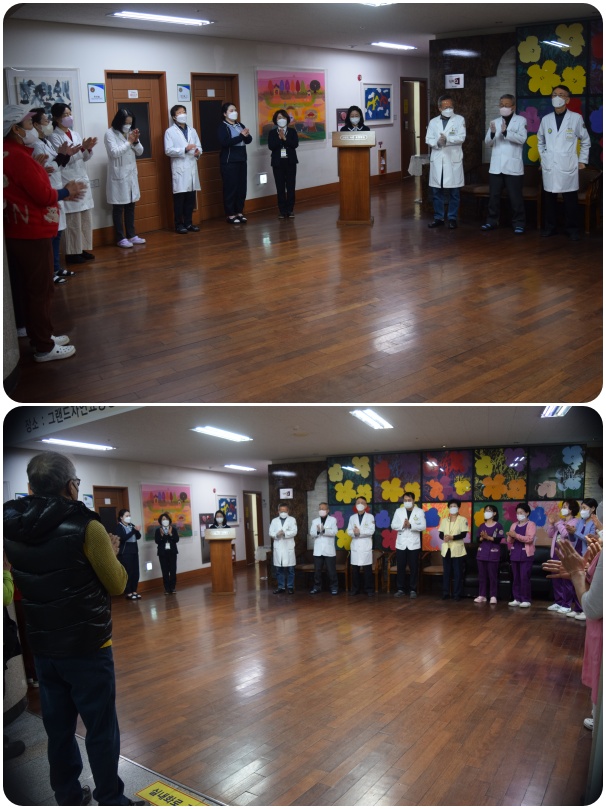 12월 1일 그랜드자연요양병원은 1층 로비에서 전직원들이 참석한 가운데 그랜드자연 12월 월례회를 가졌다. 이날 하필성부원장은 한해를 잘 마무리하는 12월이 될 것을 강조하며 내년을 준비하는 한달을 만들자고 인사에 대신하였다. 이어서 신입직원의 인사가 이어졌고 한해의 마지막 달 12월의 시작을 준비하는 마음으로 "그랜드 그랜드 힘!"의 구호와 함께 12월 월례회를 마쳤다.