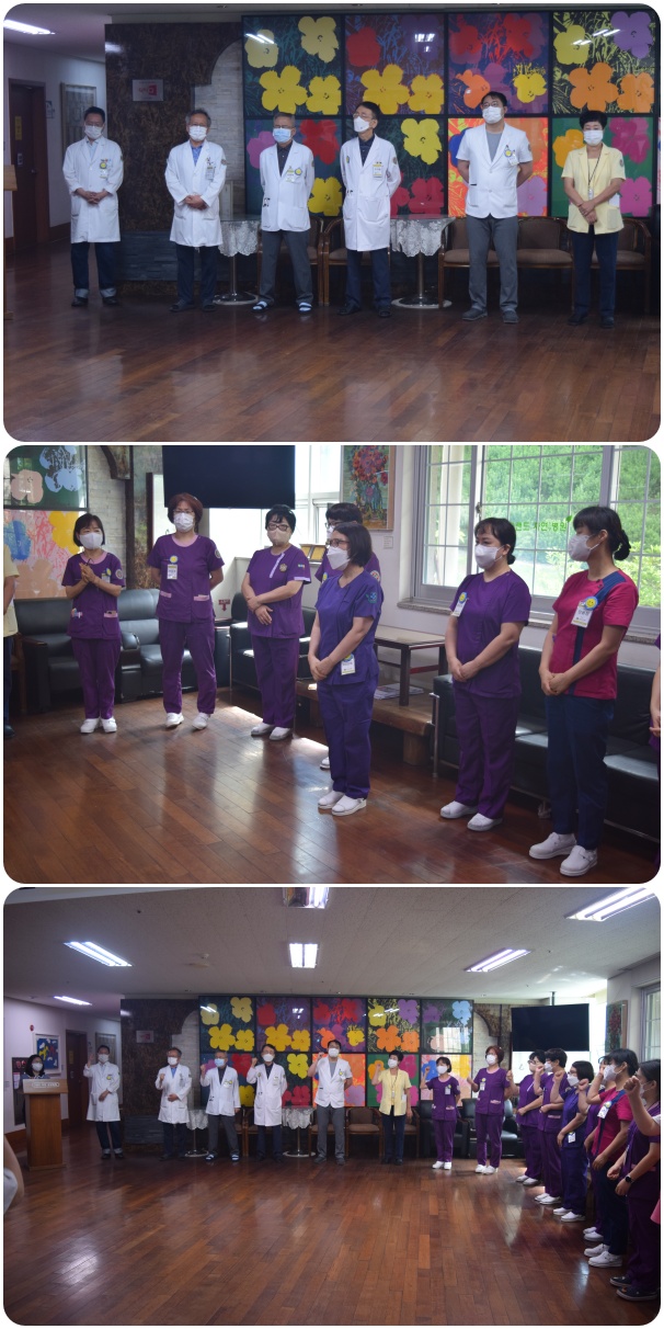 그랜드자연요양병원은 7월 1일 1층 로비에서 전직원들이 참석한 가운데 그랜드자연 월례회를 가졌다. 이재일 병원장은 날씨가 더워짐에 있어 어르신들의 음식물 관리와 건강관리에 더 각별한 주의를 당부하였으며. 이어서 신입직원들의 인사가 이어졌고 7월의 시작을 준비하는 마음으로 "그랜드 그랜드 힘!"의 구호와 함께 월례회를 마쳤다.
