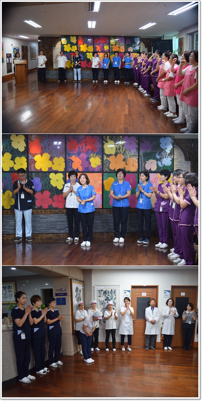 그랜드자연요양병원은 9월 2일 1층 로비에서 전직원들이 참석한 가운데 그랜드자연 월례회를 가졌다. 이재일 병원장은 환절기 어르신들의 건강 관리에 만전을 기하자고 강조하였으며. 이어서 신입직원들의 인사가 이어졌다.