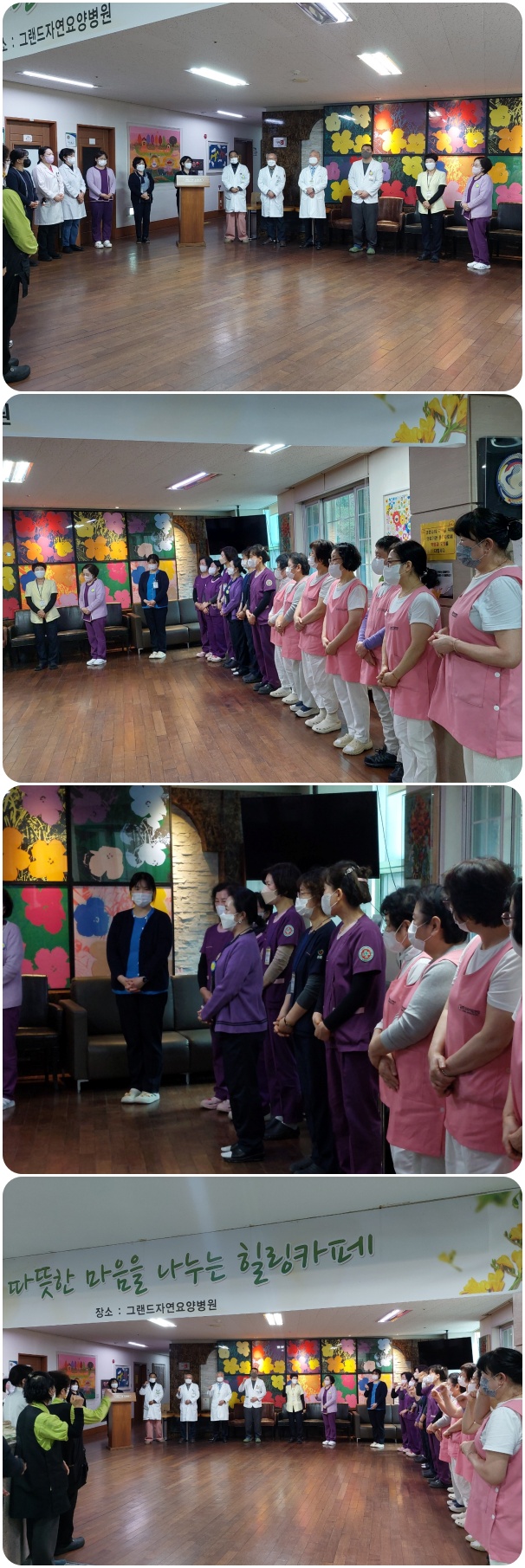 3월 월례회 가져. 페이지 정보 작성자 최고관리자 작성일26-03-04 16:40 조회534회 댓글0건 이전글 다음글 목록 본문 그랜드자연요양병원은 3월 4일 1층 로비에서 전 직원들이 참석한 가운데 그랜드자연 월례회를 가졌다. 신입 직원들의 인사가 이어졌고 봄의 설레임으로 시작되는 3월을 준비하는 마음으로 "그랜드 그랜드 힘!"의 구호와 함께 3월 월례회를 마쳤다. 댓글목록 등록된 댓글이 없습니다. 이전글 다음글 목록
