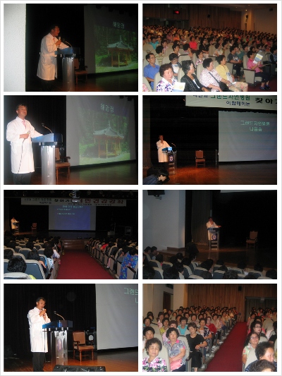 그랜드자연병원과 부산대학교병원 주최로 시민과 그랜드자연병원이 함께하는 찾아가는 시민건강강좌가 진구청에서 열렸습니다. 이날 저희 그랜드자연병원 병원장님이신 나 용 승 원장님께서 강의 해주셨고, 오백명이 넘는 시민 여러분이 참여해 주신 덕분에 자리가 더욱 빛나고 뜻깊었습니다. 바쁜신 와중에 참여해 주신 많은 시민 여러분들께 다시한번 깊은 감사의 말씀을 전하며. 강의하시느라 수고해주신 나용승원장님께도 감사의 말씀을 전합니다.