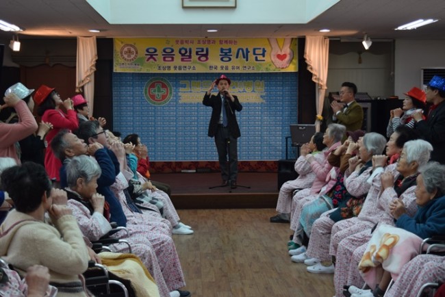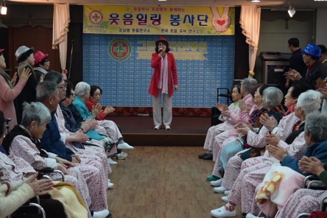 그랜드자연요양병원은 우리 어르신들이 보다 나은 병상생활을 통해 건강해지기 위한 특화 프로그램으로 웃음박사 조상영 교수를 모셔 즐거운 웃음요법을 하고 있다.