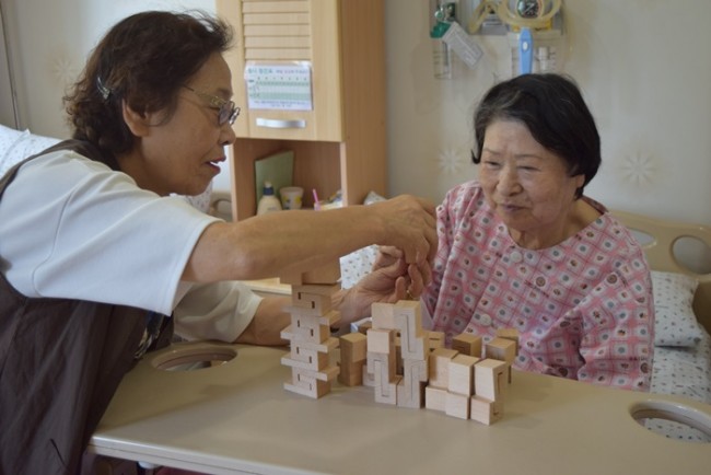 그랜드자연요양병원에서는 노인생활과학연구소가 개발한 다양한 노인교구를 노인용 교구 활용지도사를 통해 입원하고 있는 어르신들께 적용하여 인지개선, 공간지각, 소통도구로 활용하고 있다.