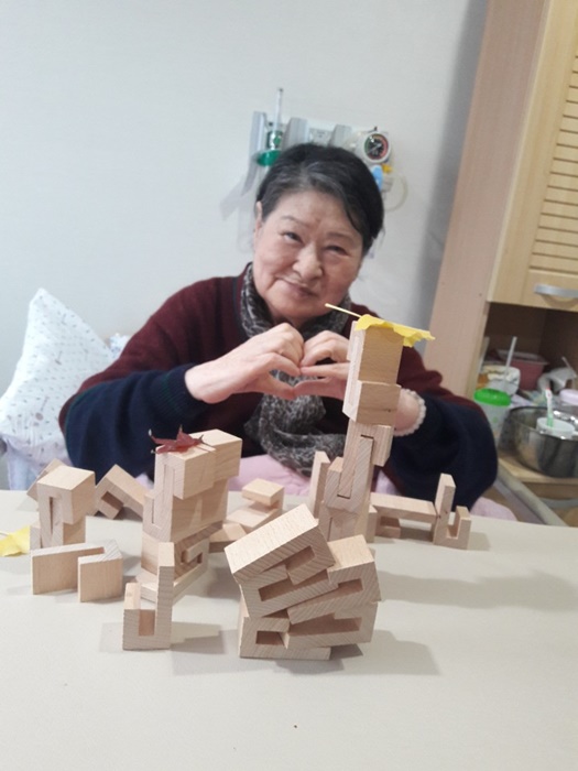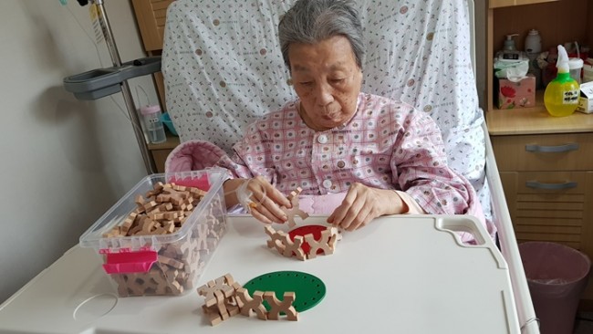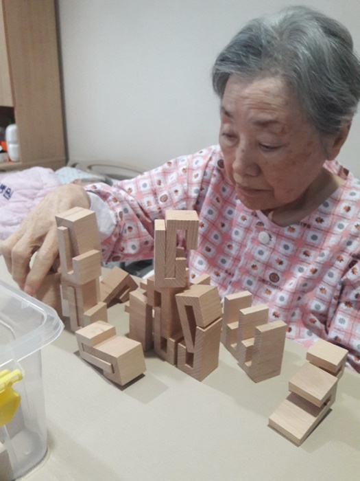 그랜드자연요양병원에서는 노인생활과학연구소가 개발한 다양한 노인교구를 노인용 교구 활용지도사를 통해 입원하고 있는 어르신들께 적용하여 인지개선, 공간지각, 소통도구로 활용하고 있다.
