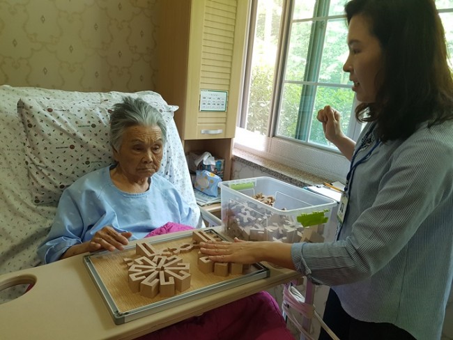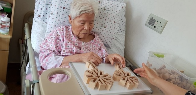 그랜드자연요양병원에서는 노인생활과학연구소가 개발한 다양한 노인교구를 노인용 교구 활용지도사를 통해 입원하고 있는 어르신들께 적용하여 인지개선, 공간지각, 소통도구로 활용하고 있다.