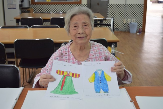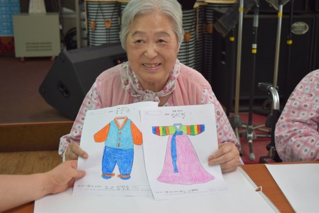 그랜드자연요양병원에서 활용하고 있는 어르신들을 위한 인지재활 특화프로그램중 미술요법은 그림으로 어르신들의 마음을 읽는다. <한복 꾸미기>는 익숙한 주제(전통 의복)로 흥미를 유발하고 소근육 운동으로 집중력을 향상 시키는데 도움을 준다.