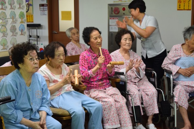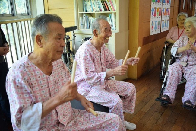 그랜드자연요양병원의 다양한 음악요법 프로그램 중 어르신들이 선호하는 음악활동은 노래부르기(기억 속에 잔존하고 있는 노래를 생각나게 하고 가사를 통해 문자의 기억을 되살려 언어능력의 회복을 기대할 수 있다.)와 악기연주(<리듬악기>연주를 통해 규칙을 기억하고 실행하는 연습을 반복해 기억력이 떨어지는 것을 막는 효과가 있다. 또한, 리듬감의 자극, 신경계 및 운동계의 손발의 운동능력을 자극한다)이다.