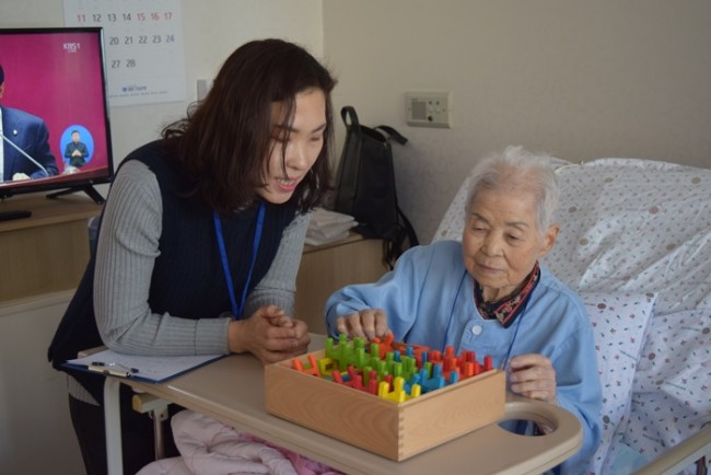 그랜드자연요양병원에서는 노인생활과학연구소가 개발한 다양한 노인교구를 노인용 교구 활용지도사를 통해 입원하고 있는 어르신들께 적용하여 인지개선, 공간지각, 소통도구로 활용하고 있다.