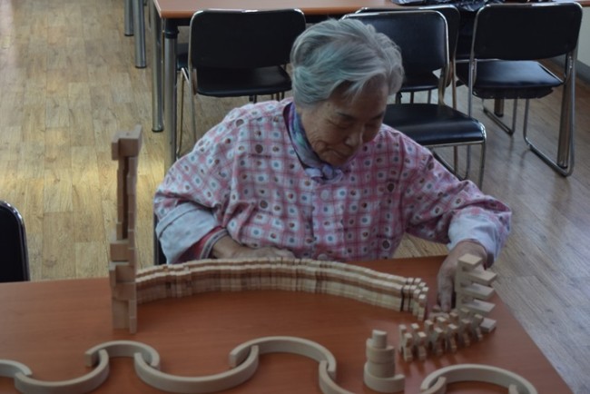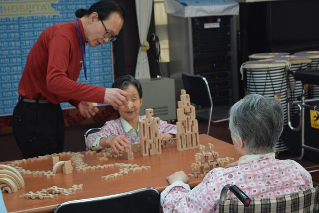 그랜드자연요양병원에서는 노인생활과학연구소가 개발한 다양한 노인교구를 노인용 교구 활용지도사를 통해 입원하고 있는 어르신들께 적용하여 인지개선, 공간지각, 소통도구로 활용하고 있다.
