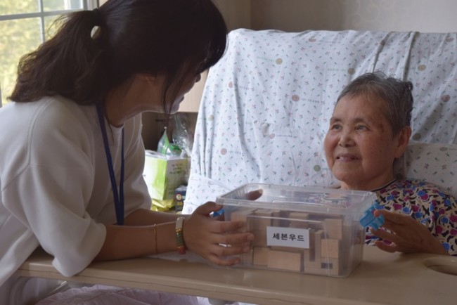 그랜드자연요양병원에서는 노인생활과학연구소가 개발한 다양한 노인교구를 노인용 교구 활용지도사를 통해 입원하고 있는 어르신들께 적용하여 인지개선, 공간지각, 소통도구로 활용하고 있다.