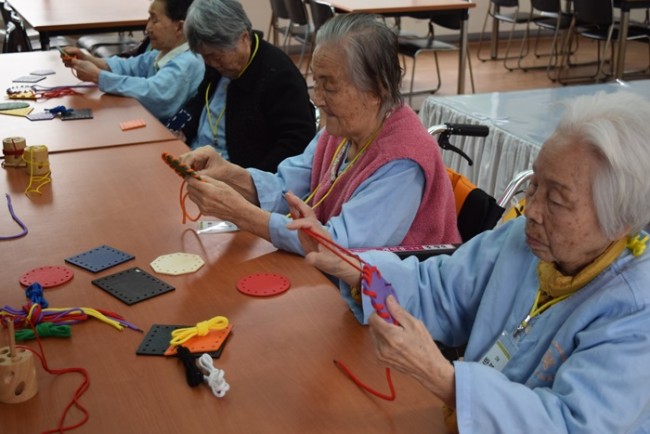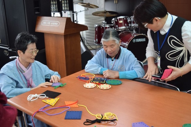 그랜드자연요양병원에서는 노인생활과학연구소가 개발한 다양한 노인교구를 노인용 교구 활용지도사를 통해 입원하고 있는 어르신들께 적용하여 인지개선, 공간지각, 소통도구로 활용하고 있다.