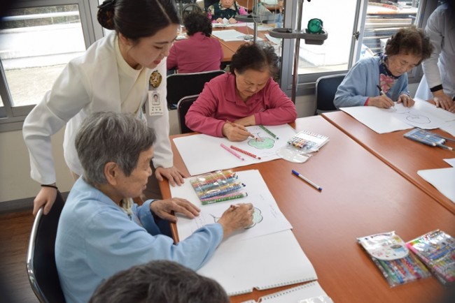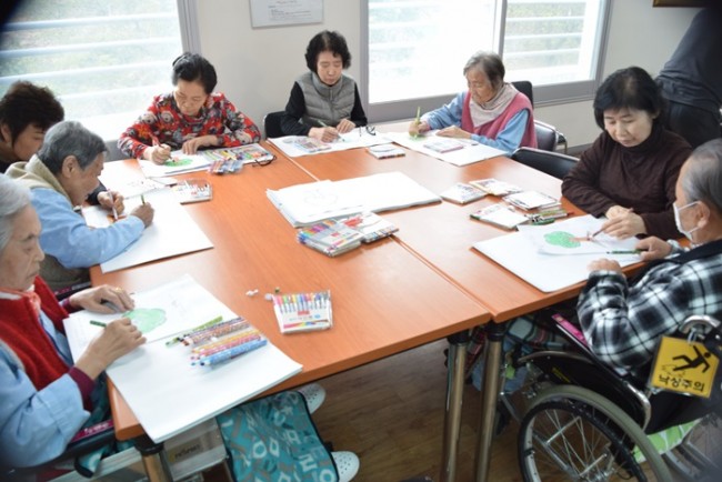 그랜드자연요양병원에서 활용하고 있는 어르신들을 위한 인지재활 전문프로그램중 미술심리치료는 그림으로 어르신들의 마음을 읽는다. <나의 나무 꾸미기>는 무의식 자아에서 시간적 범위를 인식하며 자아 존중감 향상에 도움을 준다.