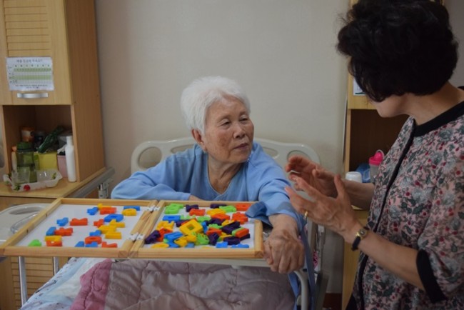 그랜드자연요양병원에서는 노인생활과학연구소가 개발한 다양한 노인교구를 노인용 교구 활용지도사를 통해 입원하고 있는 어르신들께 적용하여 인지개선, 공간지각, 소통도구로 활용하고 있다.