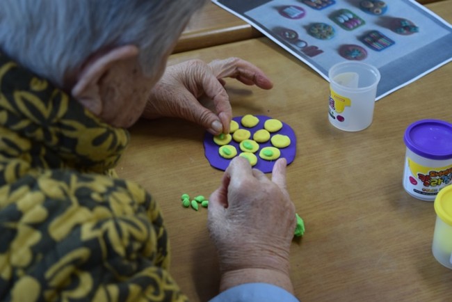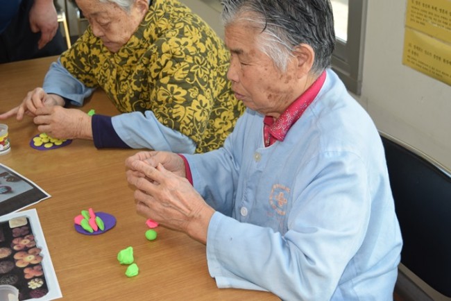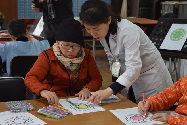 그랜드자연요양병원에서 활용하고 있는 어르신들을 위한 인지재활 전문프로그램중 미술심리치료는 그림으로 어르신들의 마음을 읽는다. <명절 음식상 차리기>를 통해 가족 간의 긍정적 정서를 갖도록 한다.