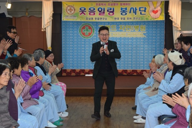 그랜드자연요양병원은 우리 어르신들이 보다 나은 병상생활을 통해 건강해지기 위한 문화 프로그램으로 웃음박사 조상영 교수를 모셔 즐거운 웃음치료를 하고 있다.
