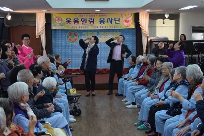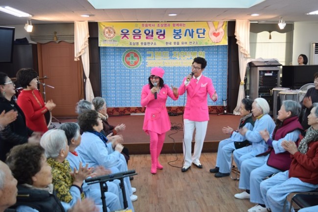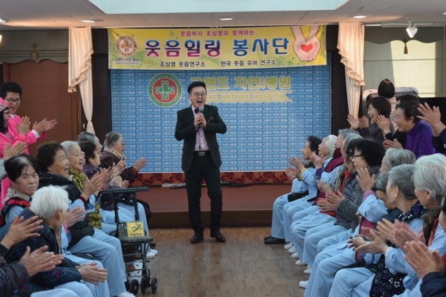 그랜드자연요양병원은 우리 어르신들이 보다 나은 병상생활을 통해 건강해지기 위한 문화 프로그램으로 웃음박사 조상영 교수를 모셔 즐거운 웃음치료를 하고 있다.