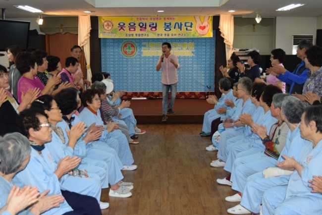 조상영 교수와 함께하는 9월의 즐거운 웃음치료 시간에 페이지 정보 작성자 최고관리자 작성일16-11-05 16:51 조회784회 댓글0건 이전글 다음글 목록 본문 그랜드자연요양병원은 우리 어르신들이 보다 나은 병상생활을 통해 건강해지기 위한 문화 프로그램으로 웃음박사 조상영 교수를 모셔 즐거운 웃음치료를 하고 있다. 댓글목록 등록된 댓글이 없습니다. 이전글 다음글 목록