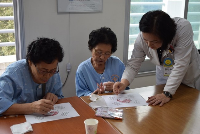 10월의 미술치료 시간에 페이지 정보 작성자 최고관리자 작성일16-11-10 16:49 조회858회 댓글0건 이전글 다음글 목록 본문 그랜드자연요양병원에서 활용하고 있는 어르신들을 위한 인지재활 전문프로그램중 미술심리치료는 그림으로 어르신들의 마음을 읽는다. <나의 손 꾸미기>를 통해 지나온 삶을 회상하며 과거의 자신을 표출하고 긍정적 통합을 이룬다 댓글목록 등록된 댓글이 없습니다. 이전글 다음글 목록