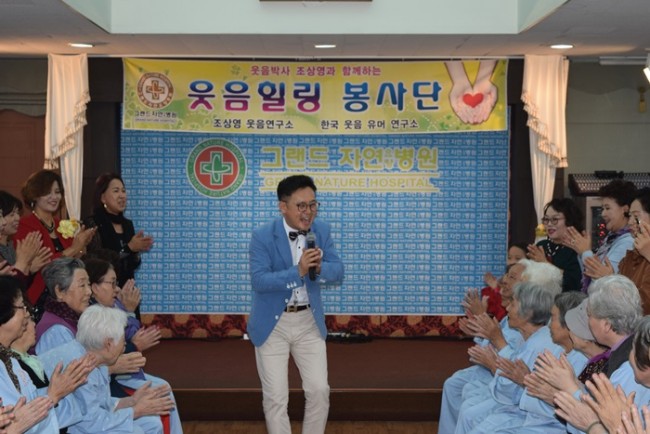 조상영교수와 함께하는 10월의 즐거운 웃음치료 시간에 페이지 정보 작성자 최고관리자 작성일16-11-10 17:32 조회774회 댓글0건 이전글 다음글 목록 본문 그랜드자연요양병원은 우리 어르신들이 보다 나은 병상생활을 통해 건강해지기 위한 문화 프로그램으로 웃음박사 조상영 교수를 모셔 즐거운 웃음치료를 하고 있다. 댓글목록 등록된 댓글이 없습니다. 이전글 다음글 목록