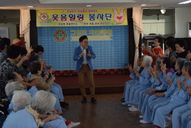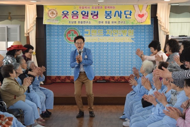 조상영 교수와 함께하는 5월의 즐거운 웃음치료 시간에 페이지 정보 작성자 최고관리자 작성일16-05-30 11:51 조회903회 댓글0건 이전글 다음글 목록 본문 그랜드자연요양병원은 우리 어르신들이 보다 나은 병상생활을 통해 건강해지기 위한 문화 프로그램으로 웃음박사 조상영 교수를 모셔 즐거운 웃음치료를 하고 있다. 댓글목록 등록된 댓글이 없습니다. 이전글 다음글 목록