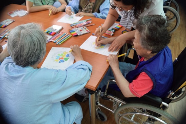 9월의 미술치료 시간에 페이지 정보 작성자 최고관리자 작성일15-09-22 11:33 조회910회 댓글0건 이전글 다음글 목록 본문 그랜드자연요양병원에서 활용하고 있는 어르신들을 위한 인지재활 전문프로그램중 미술심리치료는 그림으로 어르신들의 마음을 읽는다. 좋았던 때, 슬펐던 때 과거를 떠올리며 작품을 만들기 때문에 많은 사고를 할 수 있도록 도움을 주며, 기억력을 증진시키는 치료기법으로 활용되고 있다. 댓글목록 등록된 댓글이 없습니다. 이전글 다음글 목록