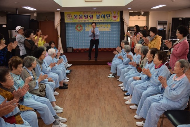 조상영 교수와 함께하는 10월의 즐거운 웃음치료 시간에 페이지 정보 작성자 최고관리자 작성일15-11-13 14:30 조회881회 댓글0건 이전글 다음글 목록 본문 그랜드자연요양병원은 우리 어르신들이 보다 나은 병상생활을 통해 건강해지기 위한 문화 프로그램으로 웃음박사 조상영 교수를 모셔 즐거운 웃음치료를 하고 있다. 댓글목록 등록된 댓글이 없습니다. 이전글 다음글 목록