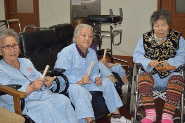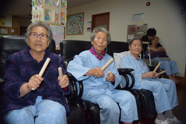 그랜드자연요양병원의 다양한 음악치료 프로그램 중 어르신들이 선호하는 음악활동은 노래부르기(기억 속에 잔존하고 있는 노래를 생각나게 하고 가사를 통해 문자의 기억을 되살려 언어능력의 회복을 기대할 수 있다.)와 악기연주(<타악기>연주를 통해 규칙을 기억하고 실행하는 연습을 반복해 기억력이 떨어지는 것을 막는 효과가 있다. 또한, 리듬감의 자극, 신경계 및 운동계의 손발의 운동능력을 자극한다)이다.
