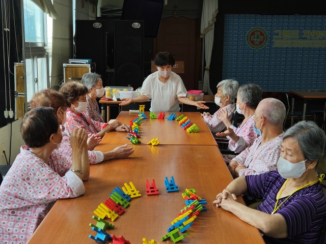 8월의 노인용 교구 활용프로그램 페이지 정보 작성자 최고관리자 작성일25-08-06 14:55 조회404회 댓글0건 이전글 다음글 목록 본문 그랜드자연요양병원에서는 노인생활과학연구소가 개발한 다양한 노인교구를 노인용 교구 활용지도사를 통해 입원하고 있는 어르신들께 적용하여 인지개선, 공간지각, 소통도구로 활용하고 있다. ◈ 그랜드자연요양병원에서는 프로그램 진행 시 개인위생, 방역수칙을 준수하여 활동하고 있습니다.◈ 댓글목록 등록된 댓글이 없습니다. 이전글 다음글 목록