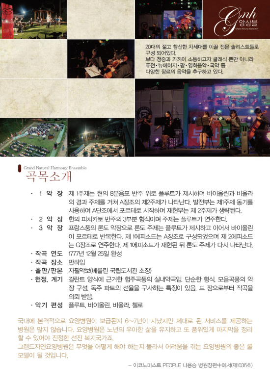 GNH앙상블의 토요공감 리플렛 페이지 정보 작성자 운영자 작성일11-07-30 09:28 조회991회 댓글0건 이전글 다음글 목록 본문 그랜드자연앙상블의 리플렛1호(2011.7.20) 댓글목록 등록된 댓글이 없습니다. 이전글 다음글 목록