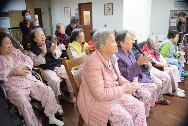 그랜드자연요양병원의 다양한 음악요법 프로그램 중 어르신들이 선호하는 음악활동은 노래부르기(기억 속에 잔존하고 있는 노래를 생각나게 하고 가사를 통해 문자의 기억을 되살려 언어능력의 회복을 기대할 수 있다)이다.