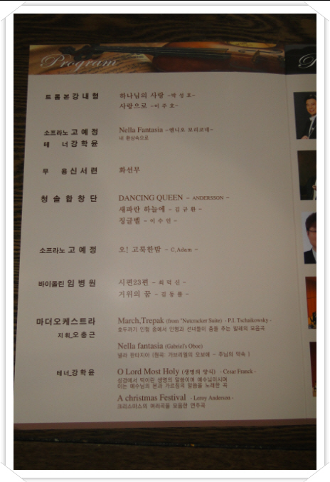 2010년 송년음악회 페이지 정보 작성자 운영자 작성일10-12-21 08:43 조회1,042회 댓글0건 이전글 다음글 목록 본문 그랜드자연요양병원은 제38회 그랜드자연음악회에 부산 남구문화예술회 음악회를 초청 오는 12.23일(목)19:00 5층 이벤트룸에서 공연을 가질 예정이다. 댓글목록 등록된 댓글이 없습니다. 이전글 다음글 목록