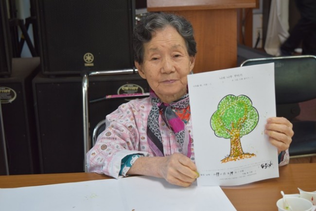 그랜드자연요양병원에서 활용하고 있는 어르신들을 위한 인지재활 특화프로그램 중 미술요법은 그림으로 어르신들의 마음을 읽는다. <나의 나무 꾸미기>는 무의식 자아에서 시간적 범위를 인식하며 자아 존중감 향상에 도움을 준다.