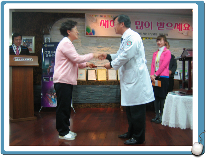 2010년 1월 그랜드 월례회 페이지 정보 작성자 그랜드자연병원 작성일10-01-05 14:58 조회1,136회 댓글0건 이전글 다음글 목록 본문 2010년을 맞아 첫 월례회를 가졌습니다. 새직원들의 입사 소감 발표를 하고, 원장님께서 2010의 해가 떠오른 의미로 작은 종소리를 들려 주셨답니다. 댓글목록 등록된 댓글이 없습니다. 이전글 다음글 목록