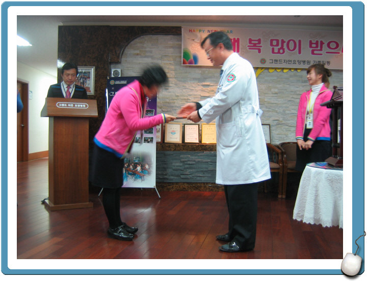 2010년 1월 그랜드 월례회 페이지 정보 작성자 그랜드자연병원 작성일10-01-05 14:58 조회1,182회 댓글0건 이전글 다음글 목록 본문 2010년을 맞아 첫 월례회를 가졌습니다. 새직원들의 입사 소감 발표를 하고, 원장님께서 2010의 해가 떠오른 의미로 작은 종소리를 들려 주셨답니다. 댓글목록 등록된 댓글이 없습니다. 이전글 다음글 목록