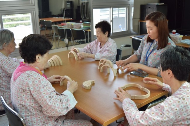 그랜드자연요양병원에서는 노인생활과학연구소가 개발한 다양한 노인교구를 노인용 교구 활용지도사를 통해 입원하고 있는 어르신들께 적용하여 인지개선, 공간지각, 소통도구로 활용하고 있다.