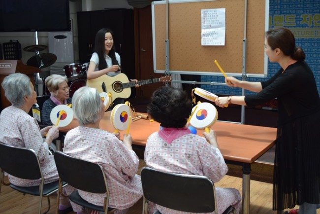 그랜드자연요양병원은 어르신들을 대상으로 <치료적 노래만들기와 부르기> <악기 연주하기> <음악 회상하기> <움직이기/ 춤추기> <음악 감상하기> 등 음악의 사용으로 삶의 질을 향상시키고, 음악요법 활동에 참여함으로 상호작용과 사회적 의사소통의 참여도를 높이며 긍정적 경험을 통하여 심리적 안정을 얻고자 한다.